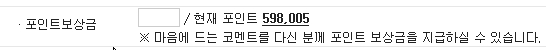 <td><input type='text' class=ed size=4 maxlength=4 name='point_gift' itemname='포인트보상금' value='<?=$point_gift?>'> / 현재 포인트 <strong><u><?=number_format($member[mb_point])?></u></strong>