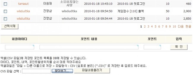 포인트 내역 엑셀파일로 대량 올리기