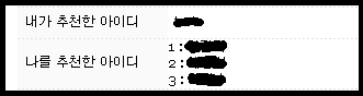 아이디는 안나오며 [나를 추천한 아이디]는 제목조차 출력이 안됩니다.
