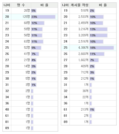 <tr><th class="sh_title">나이</th><th class="sh_title2">게시물 작성</th><th class="sh_title">비 율</th></tr>