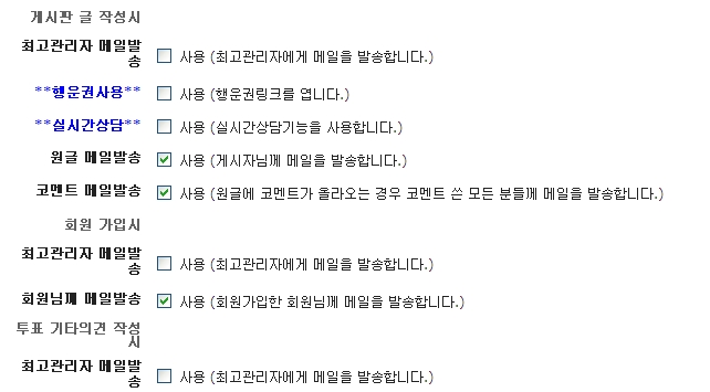 이벤트용 행운권항목을 막아놓을때도 있고..
