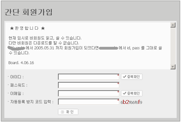 잘못 되면 책임 않지는 `간단회원가입` 정보