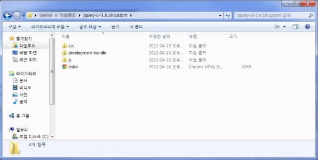 (development-bundle 폴더는 예제나 문서등의 파일이 있습니다. 제작시 참고 하세요.)