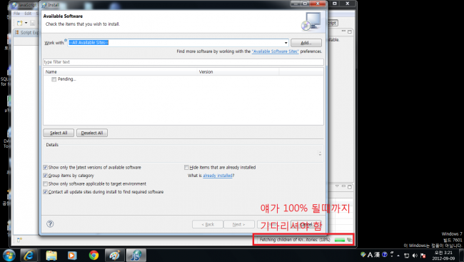 나머지는 eclipse 버전을 javascript 개발 버전으로 다운 받았기 때문에 자동으로