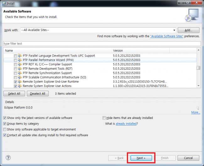 추가 설명하자면 패키지 설치시 다음 항목만 클릭 하시면 됩니다.