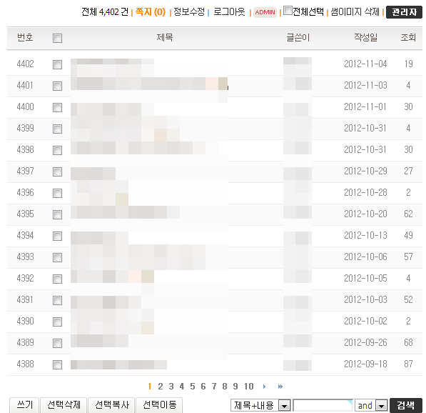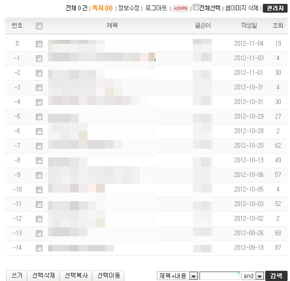 그렇게 하고 다시 게시판을 가보면 두번째 이미지처럼 정상적으로 목록이 보이게 됩니다.