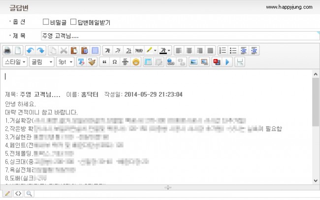 답글을 적을때 원문을 볼수 있게 해달라는 고객의 요청으로 만들어 봤습니다.