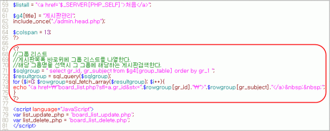 게시판목록에서 그룹별로 해당 게시판목록을 모으기고자 할 때 필요한 팁입니다.