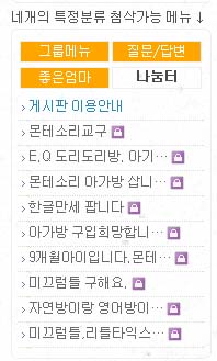 네개의 특정탭 (기본적으로 세개의 게시판 최신글과 해당 그룹 보드목록이 올라옴-첨삭가능)을 갖는 메뉴세트입니다.
