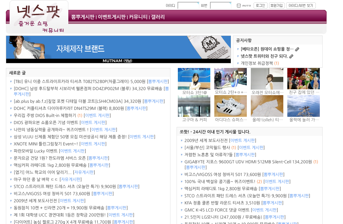 쇼핑 커뮤니티 넷스팟입니다. 정보 무난해 쇼핑 커뮤니티 넷스팟입니다. 누비 자기소개 아이디로 검색 회원게시물 자기소개 아이디로 검색 회원게시물 2009.08.12 21:17:04 조회 1,764 댓글 0 관련링크 http://netspot.kr 264회 연결 이전 게시글 다음 게시글 목록 본문 뽐뿌 정보~, 이벤트 정보~ 등이 있습니다. 디자인은 발로 해서 ㅡㅡ; 트윗으로 연동되어 트윗으로도 소식을 받아 볼 수 있습니다. 추천 0 댓글 전체 이전 게시글 다음 게시글 목록