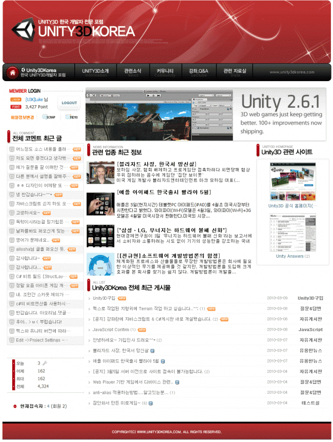 유니티라는 게임엔진이 있는데 관련된 개발자 포럼입니다. ^^;