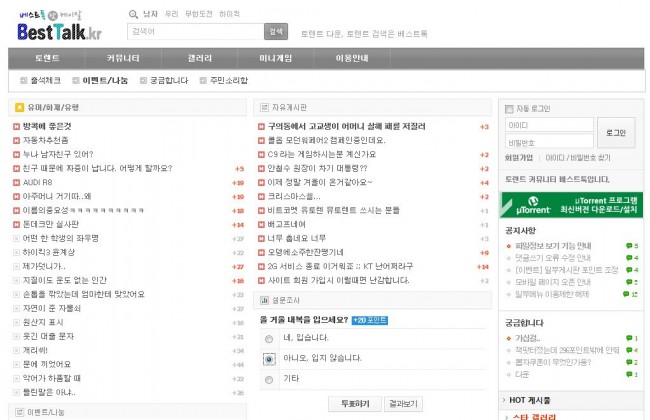 토렌트 다운로드 클릭하니까 P2P 사이트로 넘어가네요.
