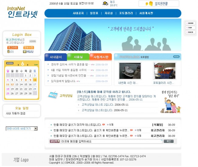 여기에 인트라넷을 붙였습니다. 사내 직원용으로 웹메일은 무한 제공합니다.