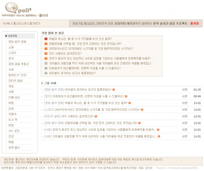 회원가입 필요없이, 대한민국 모든 초딩부터 어르신까지 참여하는 본격 실시간 설문 프로젝트 - 폴쓰리