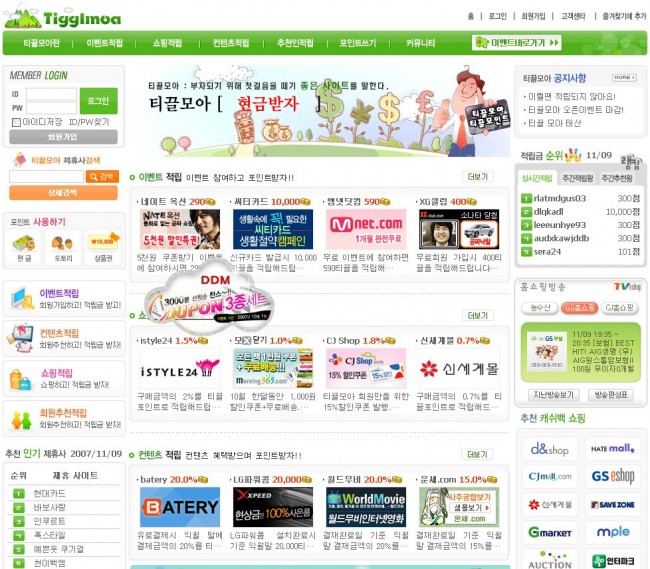 훌륭해 마일리지 통합관리 사이트 티끌모아관련링크