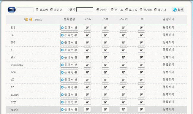 훌륭해 도메인 키워드 조합 시스템(??)관련링크