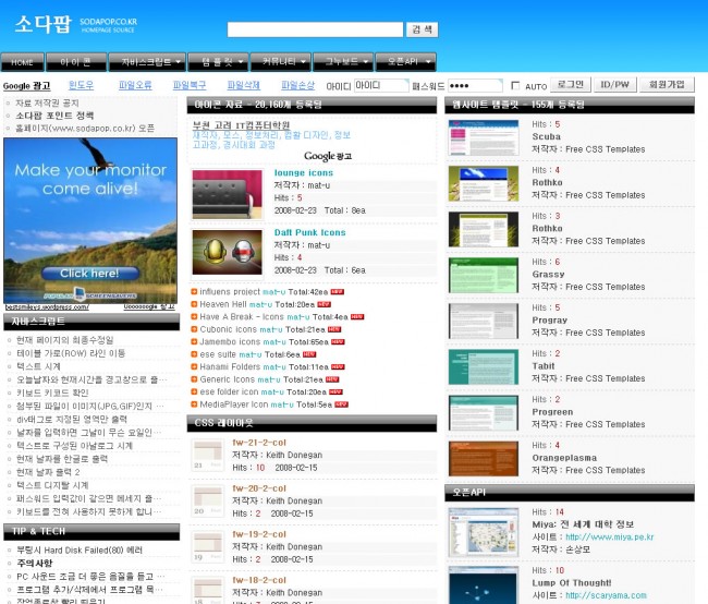 CSS로 제작한 홈페이지 소스 제공 사이트 정보