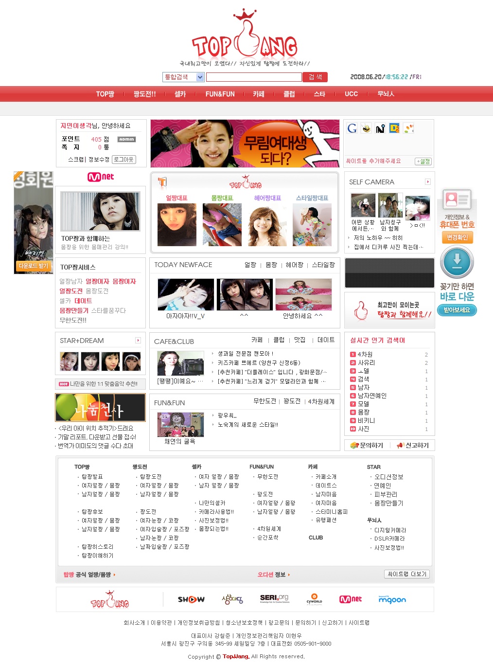 한달여간의 준비끝에 그누보드 기반으로 얼짱/몸짱 커뮤니티 "탑짱"을 오픈했습니다