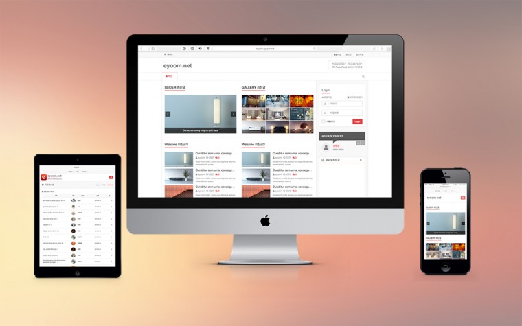 - 이윰빌더의 디자인을 유지한 상태로 그누보드 스킨을 그대로 활용하실 수 있습니다. (단, 부트스트랩 css의 적용을 받기때문에 적용한 그누보드 스킨의 특정 태그 및 클래스의 스타일은 수정이 필요합니다.)