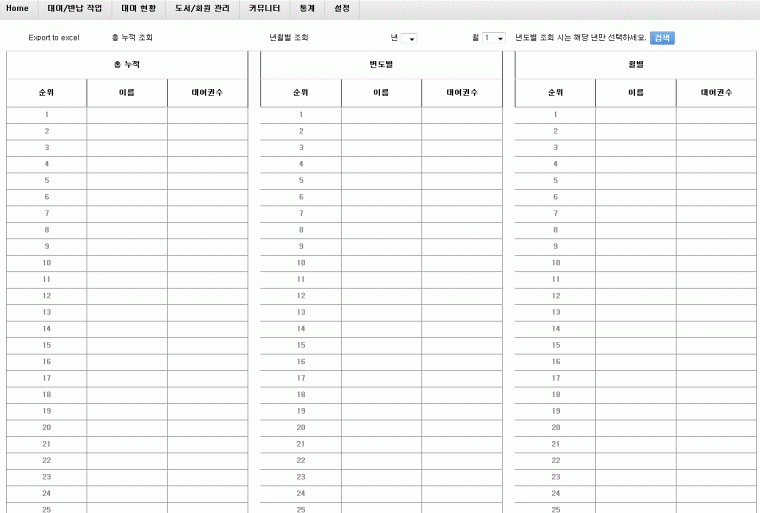 - 통계 기능을 추가해서 최다 대출자 리스트를 뽑을 수 있습니다.
