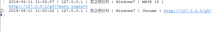 만들어 접속일시|ip|멤버닉네임|os|브라우저|레퍼러 등을 기록합니다.