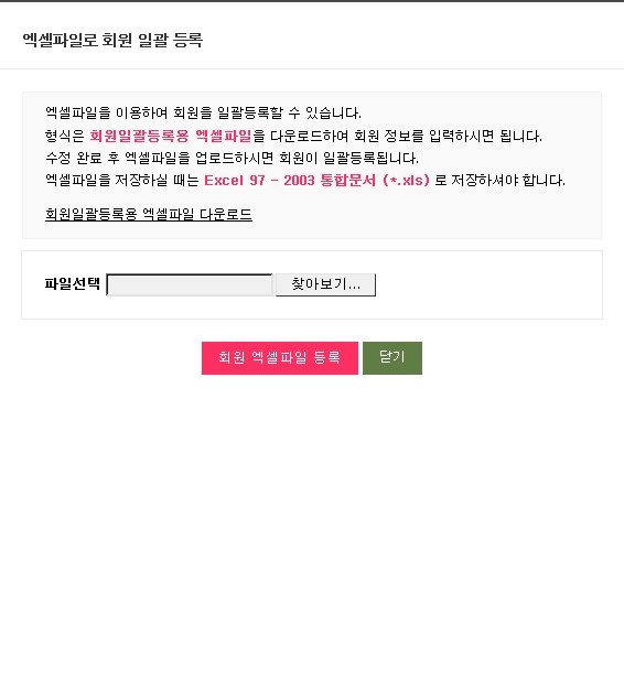 회원통합스킨 회원정보 엑셀 일괄 등록관련링크