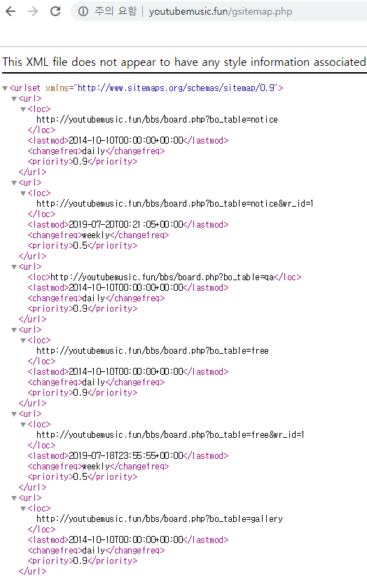 예) http://youtubemusic.fun/gsitemap.php