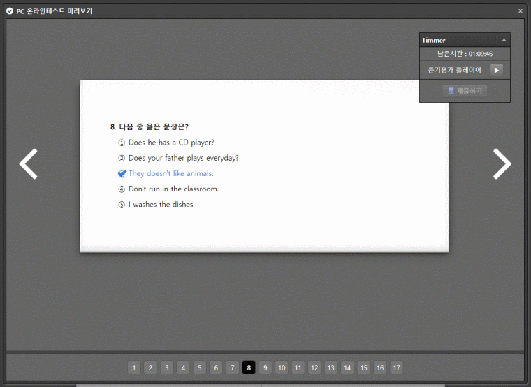 ☞ 관리자는 시험지의 온라인테스트 화면을 미리보기 할 수 있다.