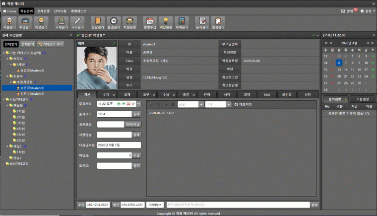 ☞ 상담관리 - 학생 개인별 상담내용을 강사들과 공유하여 원생관리 가능