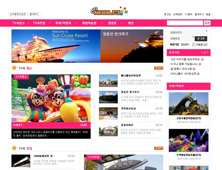 그누보드로 만든 가볼만한곳 사이트 정보
