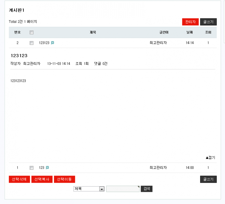 기본 게시판 ajax 내용보기 정보