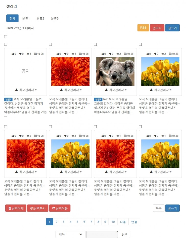 부트스트랩 반응형 갤러리 게시판 스킨입니다. 정보