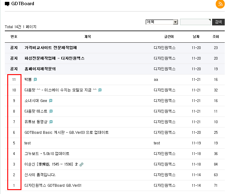 게시판 GDTBoard Basic 게시판 - 시리즈.05 + (유동 게시판 글번호)