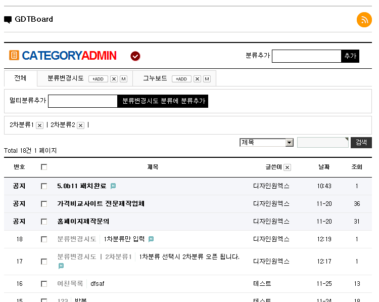 GDTBoard Basic 게시판 - 시리즈.06 + (간편한 분류 설정 업그레이드) 사용설명 동영상 :
