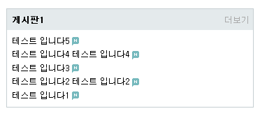 출력할 소스에 <?php echo latest("스킨폴더명", "게시판명", 5, 25); ?> 넣으시면 됩니다.