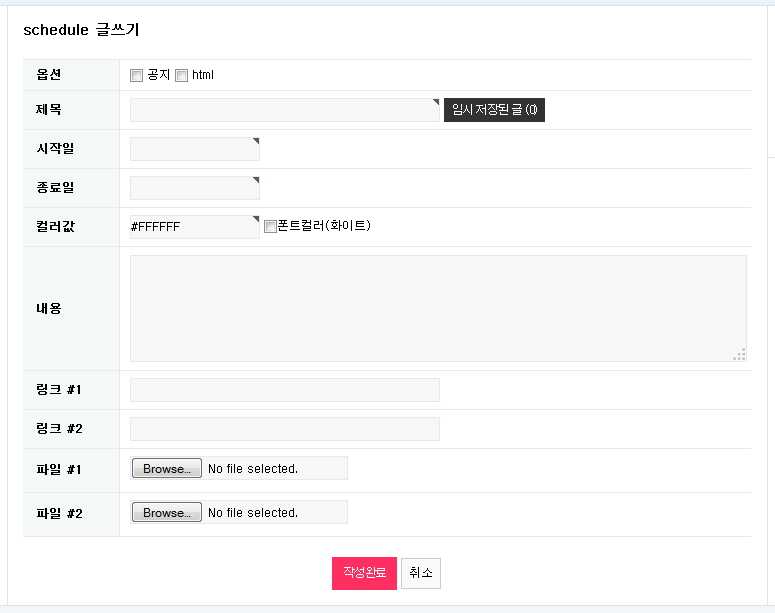 게시판 스케쥴표..기존사용본의 다이어트버전