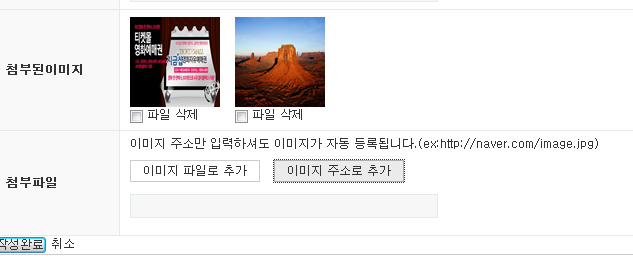 게시판 글 등록 시 이미지 주소로 이미지를 업로드 할 수 있게 수정첨부파일