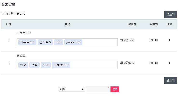 오른쪽의 인기태그 부분도 추가를 해야 되는데, 그누보드 원본을 수정안하고 해 볼려고합니다.