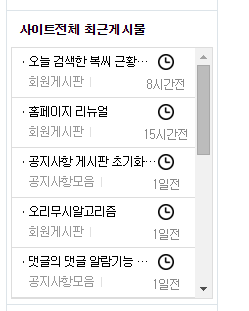 최신글 solsu님의 사이트내 최신글 스킨 G5버전으로 수정한것관련링크