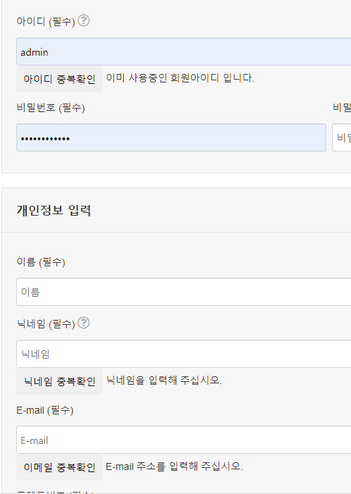 뜨던가 해야되는데 중복확인 누르면 반응이 없더라구요 ㅠㅠ