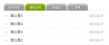 이전에 제가 올린 그누보드4버전의 최근게시물 탭메뉴를 그누보드5버전으로 수정했습니다. 기본은 탭항목이 4개 나오게 되고, 기본으로는 360로 되어 있습니다. 가로 사이즈 조절시 tab_latest.php 상단과, latest/tab_latest/latest.skin.php 에서 360을 원하는 사이즈로 수정해 주세요. 메뉴의 psd파일도 같이 첨부해 드립니다.(img폴더 안에 들어 있습니다.) -------------------------------------------------------------------- 업로드 그누보드 설치폴더/tab.php 그누보드 설치폴더/tab_img 그누보드 설치폴더/skin/latest/tab_latest 제목글자수(길이)는 latest.skin.php에서 지정하세요 호출 include_once("tab.php"); // 탭 메뉴 필요하신 분 있으시면 사용하세요.^^