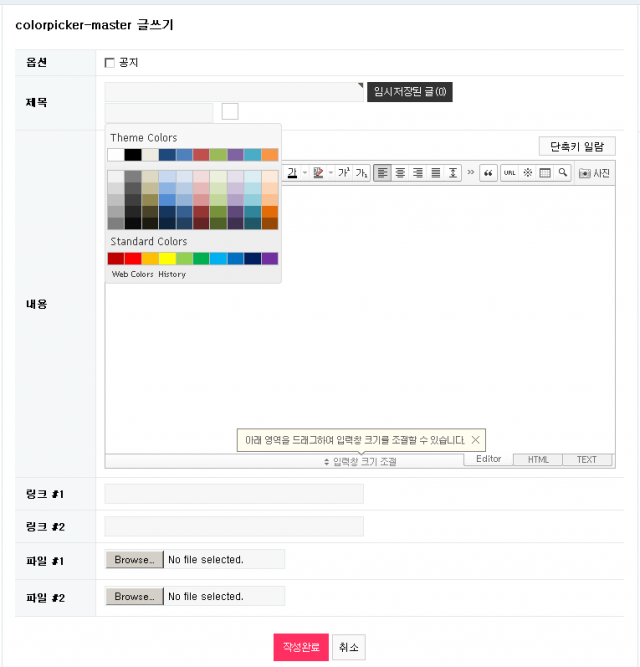 게시판 colorpicker-master를 이용한 타이틀 색 변경스킨