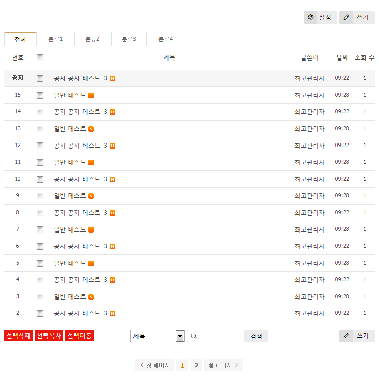 업데이트 스킨 적용하고나니 글작성하고 하단 삭제 버튼 누를시 관리자 권한일경우
