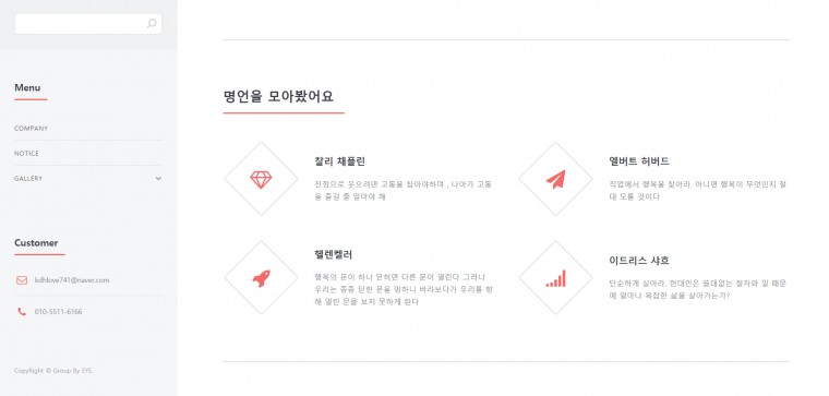 혹시요, 명언을모아봤어요 라고 되어있는 컨텐츠 부분이 2개로 칼럼이 나뉘어 있는데 3개나 4개로 바꾸려면 어떻게 해야하나요? 왼쪽에 메뉴가 있어서 그런지 칼럼을 12개로 잡고 3개,4개 나누면 전체 틀이 깨져버려서요 ㅠㅠ 좀 도와주세용....