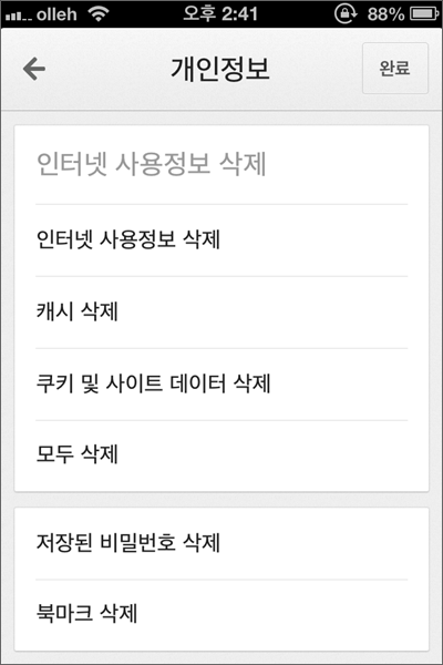 모바일에서도 임시 사용 파일들을 삭제하는 기능이 있군요.