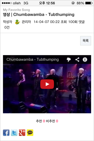 PC판에 사용하기 위해서 YouTube에서 width="640" 소스를 복사하면... height는 자동으로 "480"이 됩니다만
