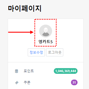 3) 회원정보수정에서 회원프로필이미지를 등록하신 후에 마이페이지에 접속하시면 적용된것을 보실 수 있습니다