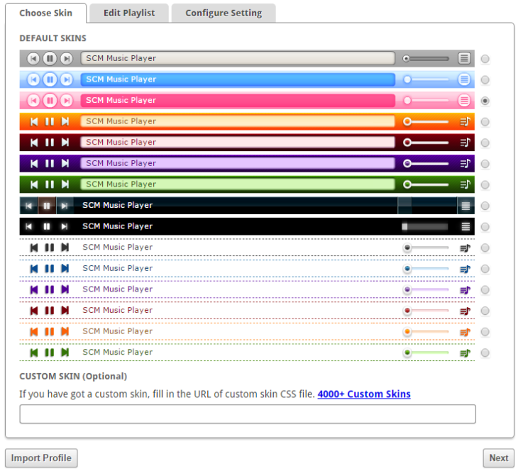 'placement':'bottom', // Placement of Player Bar, top or bottom