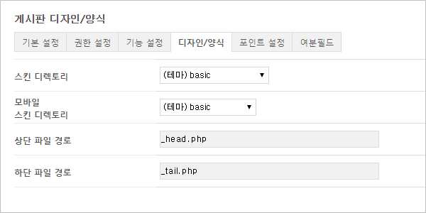 이 첫 파일들이 (제일 위 그림) 게시판 설정에서 '상단 파일 경로'와 '하단 파일 경로'에 입력된 것입니다.