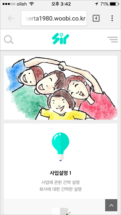 3개의 '사업설명'은 각각 모바일에서 100%로 아래로 나열됩니다.